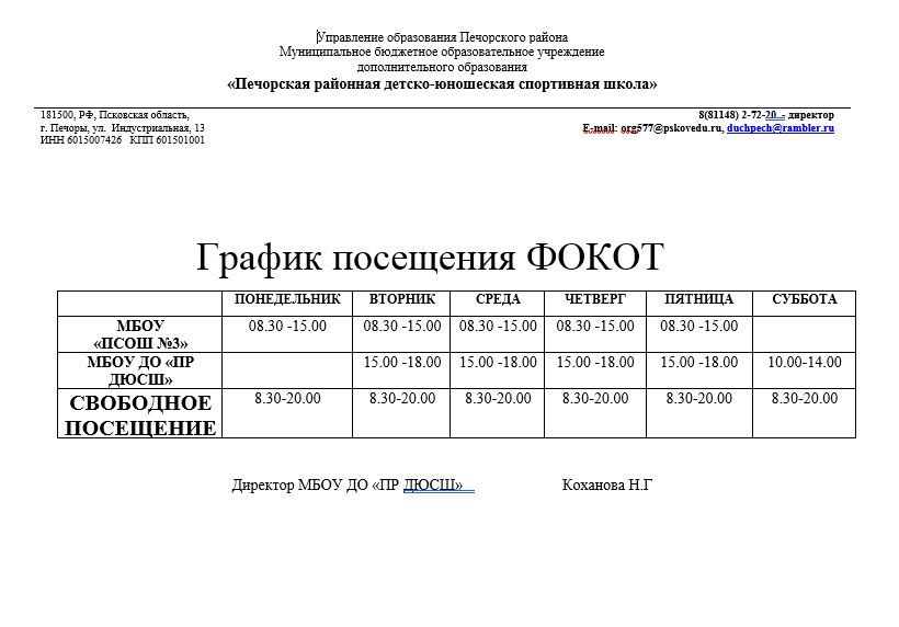 График посещения ФОКОТ